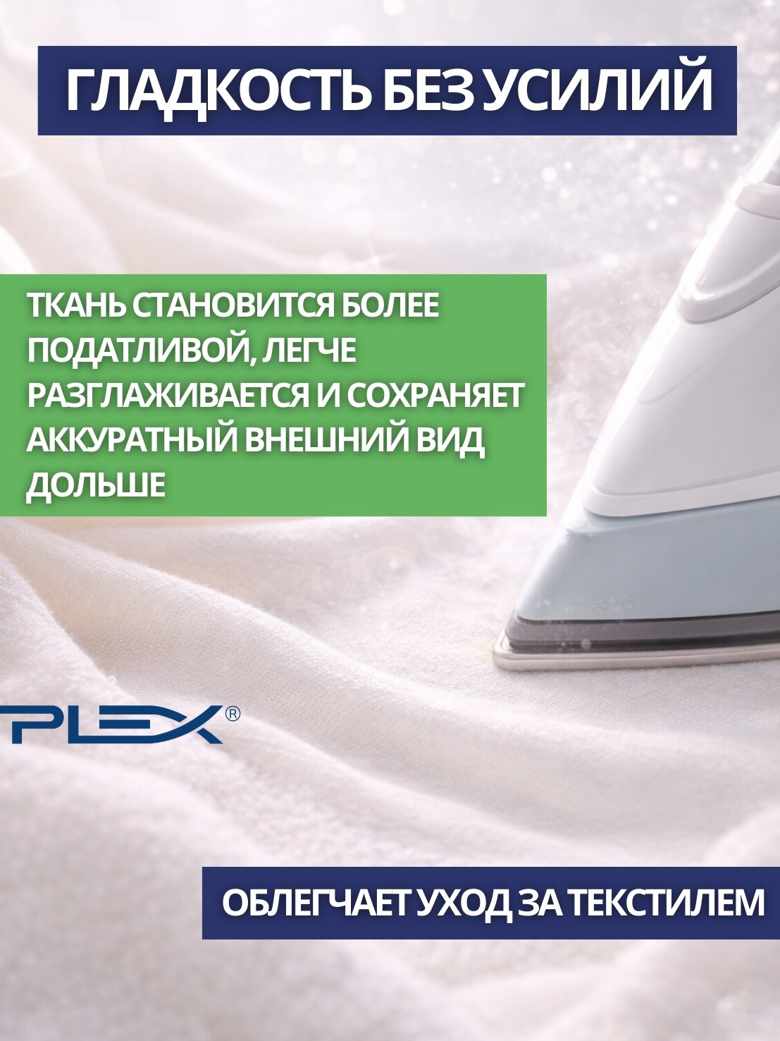 • Подходит для любых материалов, улучшает глажку, дает высокую мягкость