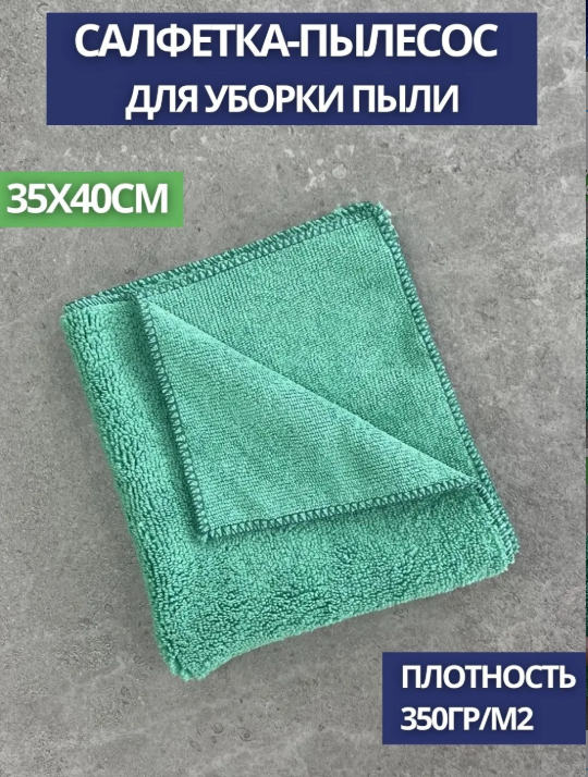 Салфетка-пылесос из микрофибры махра 350гр. 35*40см, зеленая