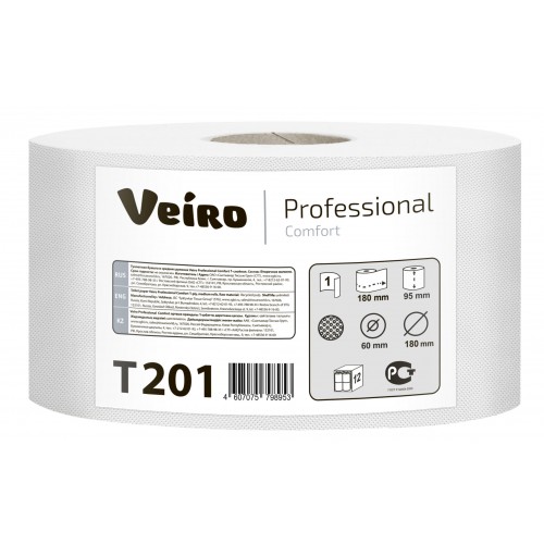 VEIRO: Т.Б. в больших рулонах Professional Comfort 1сл, 200м, 12рул/уп, белая